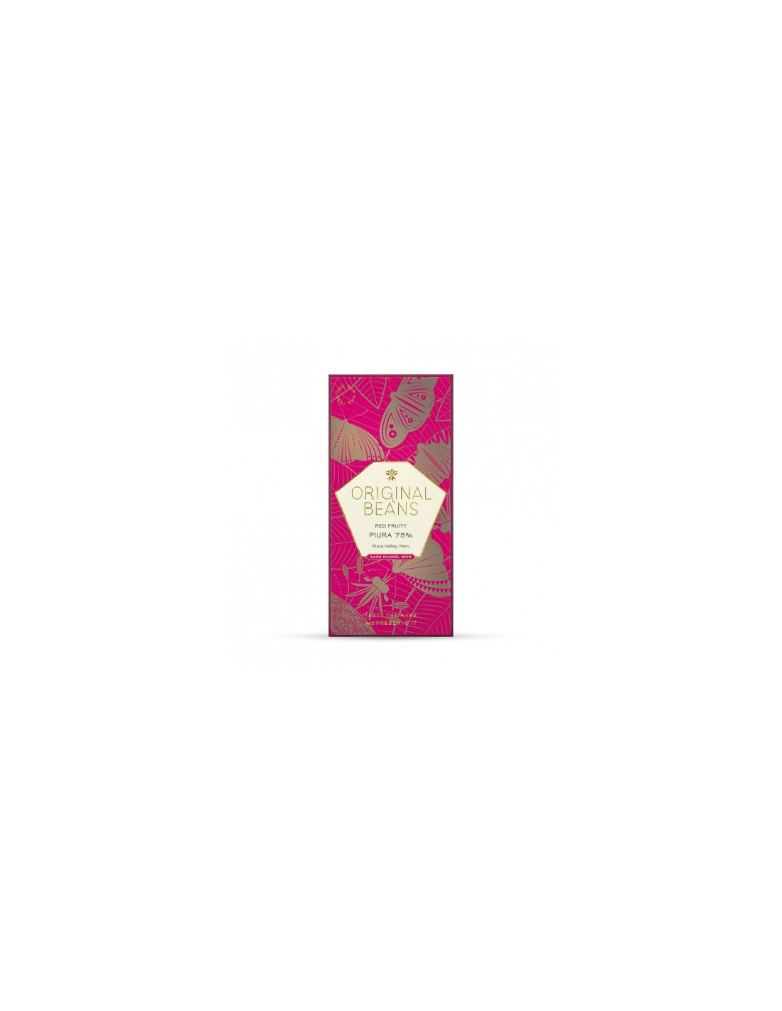 Notas de lima, frambuesa y nuez divulgan los secretos de un raro cacao blanco, una rareza de la naturaleza que encontramos a lo largo del desierto costero de Perú y el hábitat de mariposas cautivadoras.